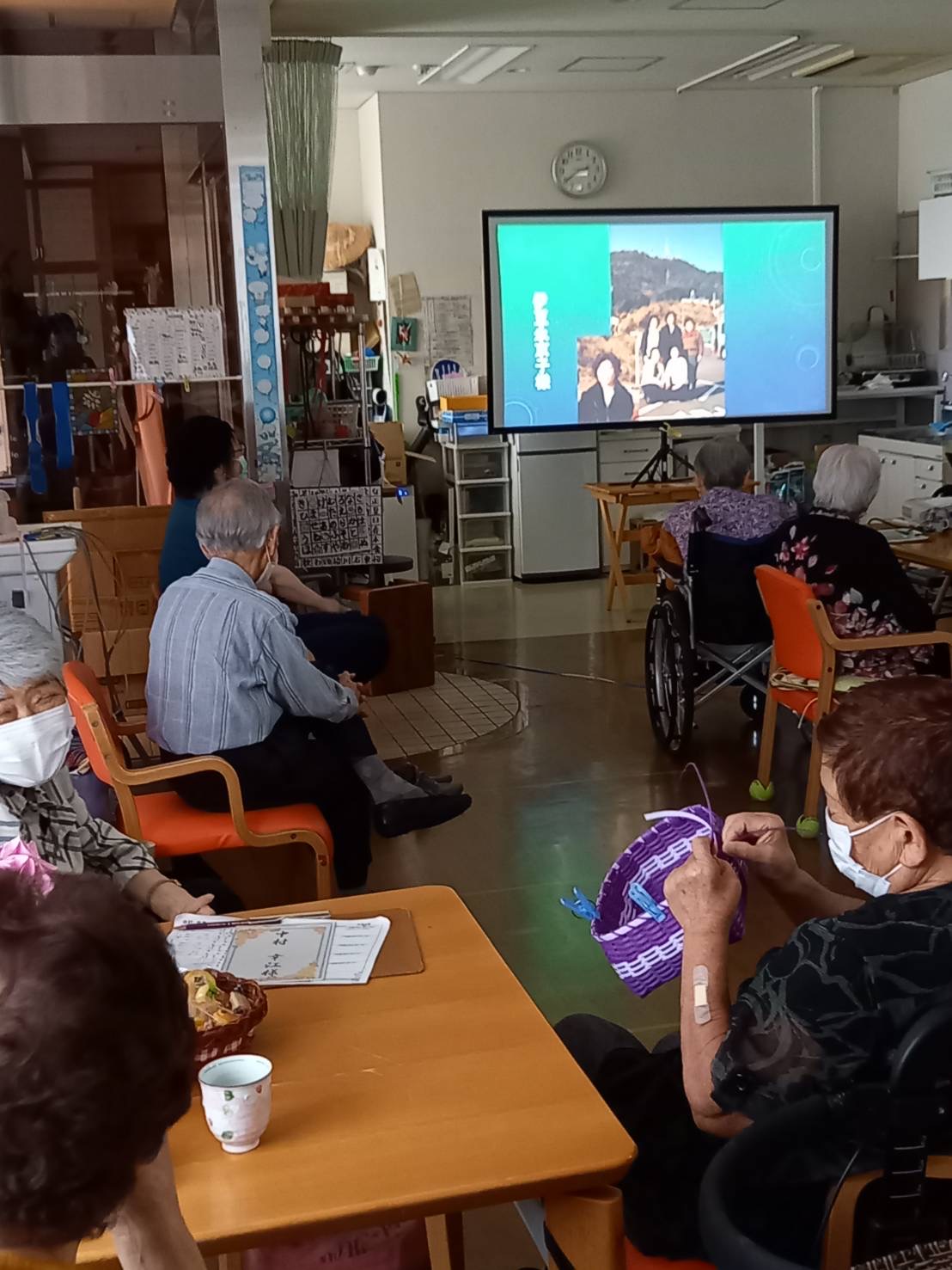 スタッフのアイディアで「あの頃は…若かった」をテーマにご利用者様、デイケアスタッフ、さらには院長、副院長、事務長の若かりし頃の写真を集めスライドショーを作成し上映しました。皆さん若かったあの頃を思い出し、各々に笑みを浮かべながら普段では聞くことができないようなエピソードトークをして頂きました。幼いころから面影のある方、そうでない方がおられ驚きと笑いのたえない会になり、皆様より喜びのお言葉を頂くことができました。