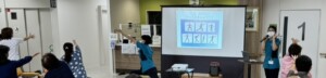今回は、「お家でできる体操について」。まずは、LSVT BIG(エルエスブイティー・ビッグ)という、パーキンソン病に特化したリハビリテーションプログラムの一部を、参加者、スタッフで行いました。